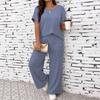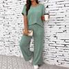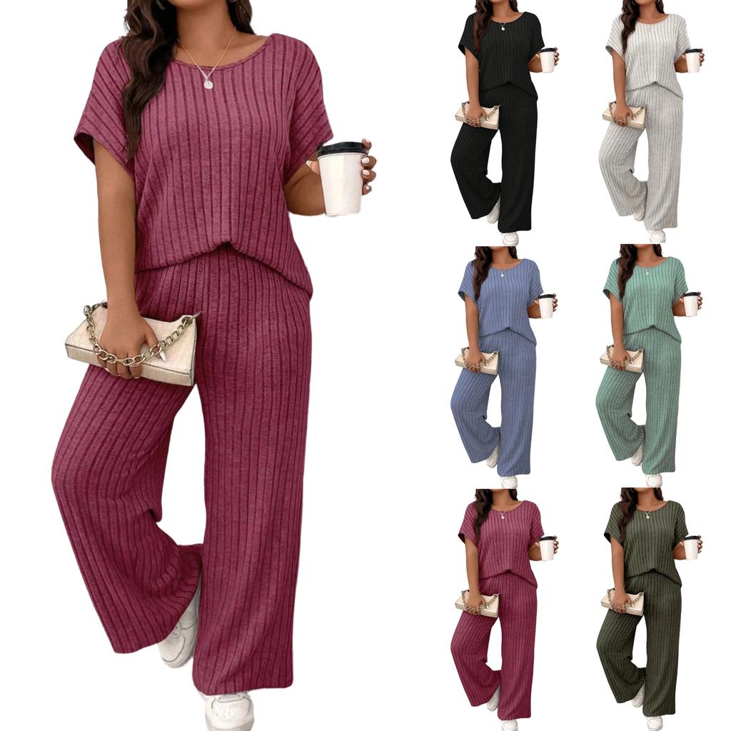 Women's Fashion Color Casual Summer New Ribbed Top And Pants Set Features: