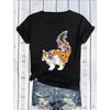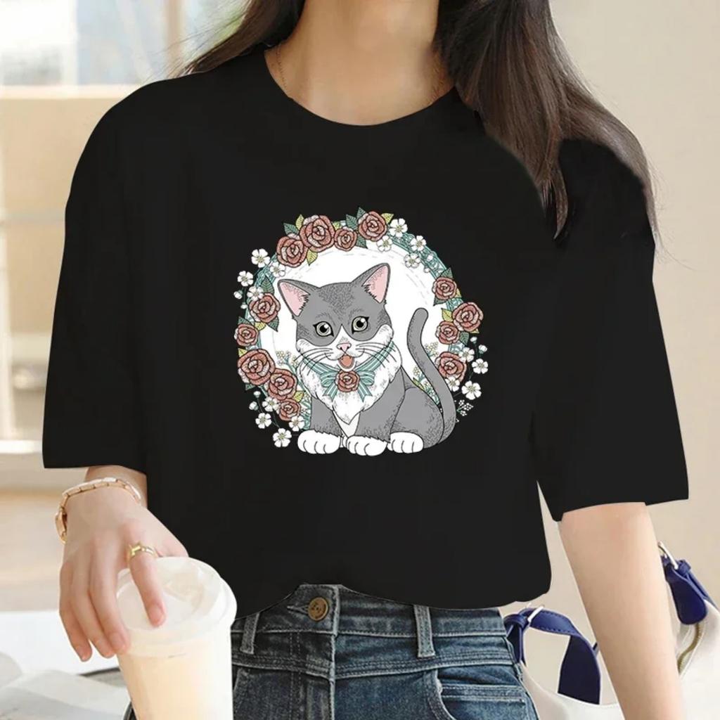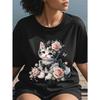 Fashion Flower Cat For Women's High-Quality Summer Print T-shirt Casual Oversized Y2k 2024Personality Sleeve O-neck