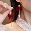 Autumn and Winter New Bow Imitation Pearl Tassel Earrings, Suitable for Women's Holiday Party Accessories and Gifts