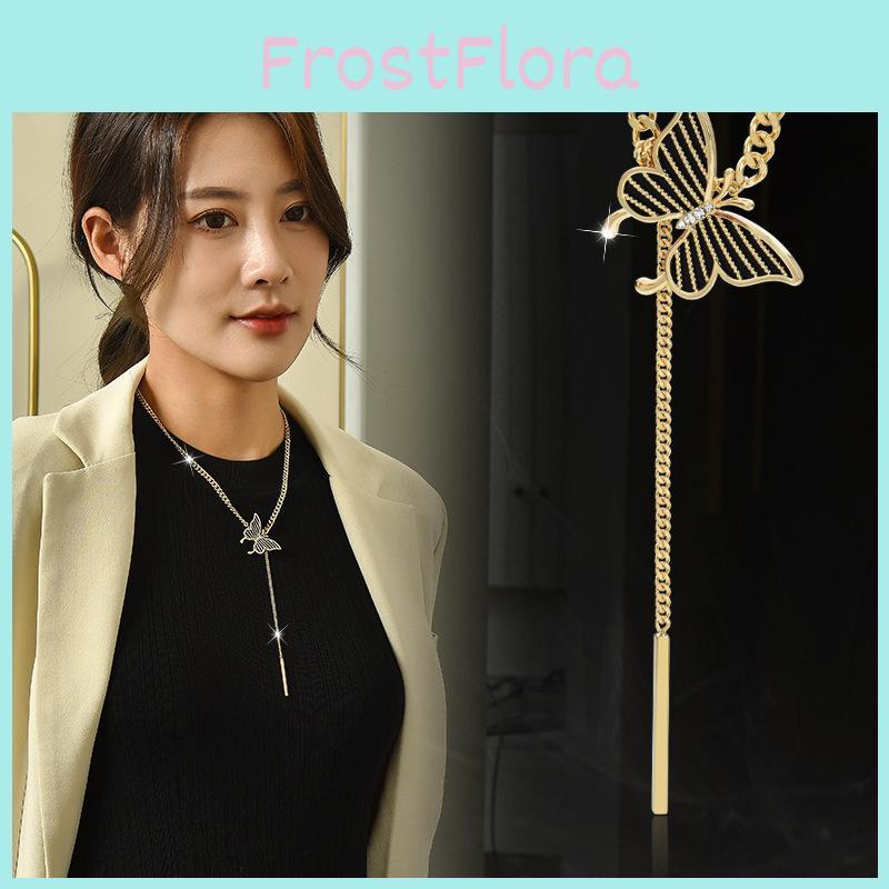 Elegant Butterfly Pendant Necklace For Women Stylish Layered Sweater Chain In Gold Silver
