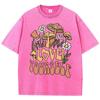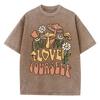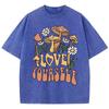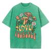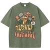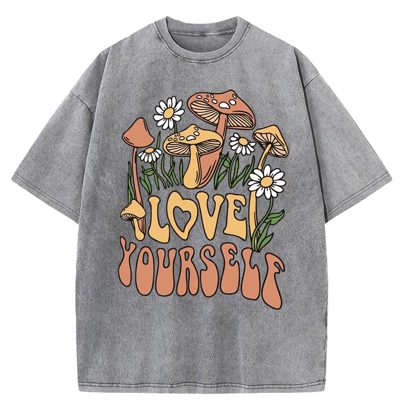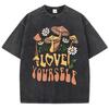 Love Yourself Mushrooms Flowers Printed Women Washed T Shirt Summer Cotton T-Shirts Loose Y2K Clothe Crewneck Short Sleeves