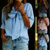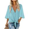 Women's Fashion Tie Knot Button V-Neck Color Medium Sleeve Shirt