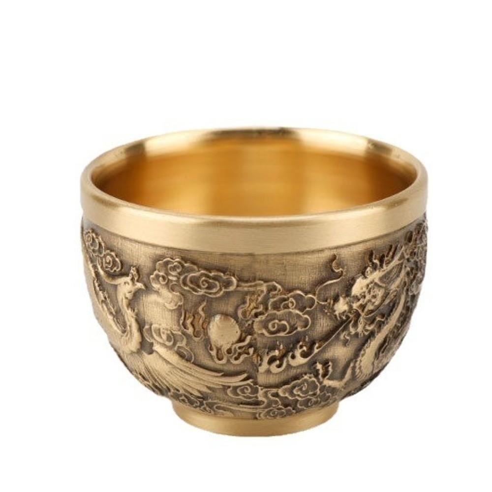 Vintage Retro Dragon Phoenix Cup Traditional Feng Shui Hundred Blessings Cup Desktop Ornament Gold Millet Cylinder Home Decor