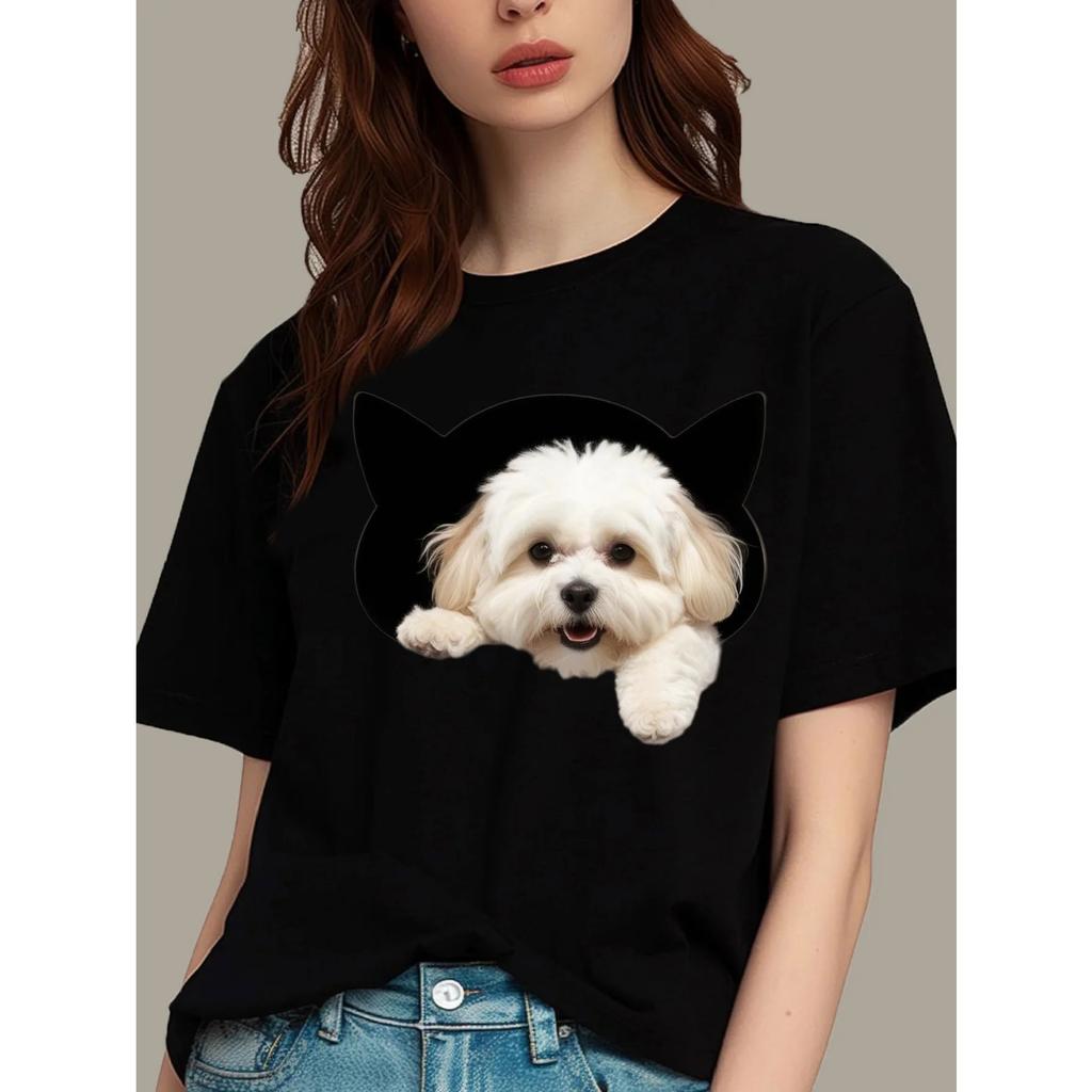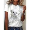 Dog Print Fun & Cheerful Round Neck T-Shirt Pure Cotton Comfortable Short Sleeve Spring Summer Women's Casual Top
