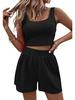 2023 Summer Women's Sweet Style Knit Sleeveless Casual Solid Color Suit