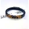 Men's Leather Tiger-eye Stone Bracelet with Leather Stainless Steel Clasp - Vintage Jewelry