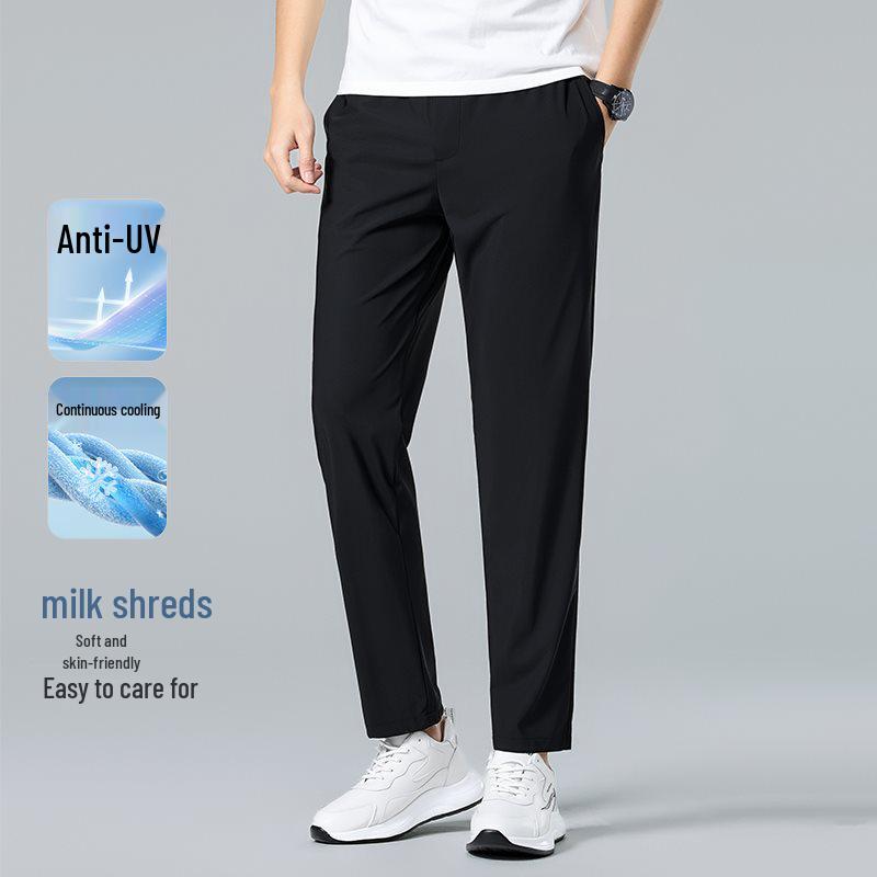 Discover ultimate comfort and style with these men's summer pants crafted from lightweight nylon. Designed for casual outings, they feature a breathable and stretchable ice silk fabric that ensures you stay cool even on the hottest days. The elastic waist provides an easy fit, while the sleek design offers a polished yet relaxed look. Perfect for those seeking functionality and fashion in warm weather attire.