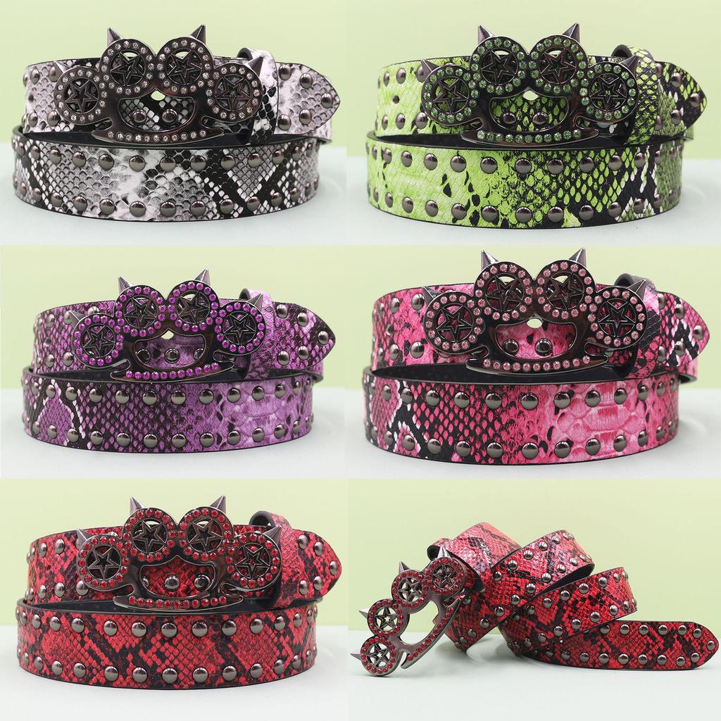 Rhinestone Tiger Claw Buckle Belt - Y2K Punk Rivet Women's Snake Skin Belt