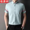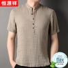 Hengyuanxiang Men's Striped Cotton Linen Short-Sleeve Shirt