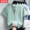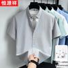 Hengyuanxiang Men's 100% Organic Cotton Short Sleeve Business Casual Shirt