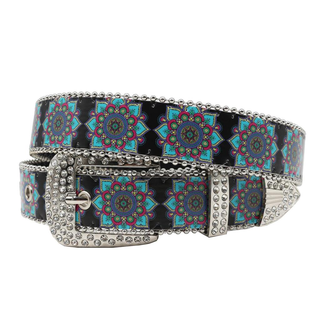 Original Design Punk Y2K Rhinestone Mandala Ethnic Belt