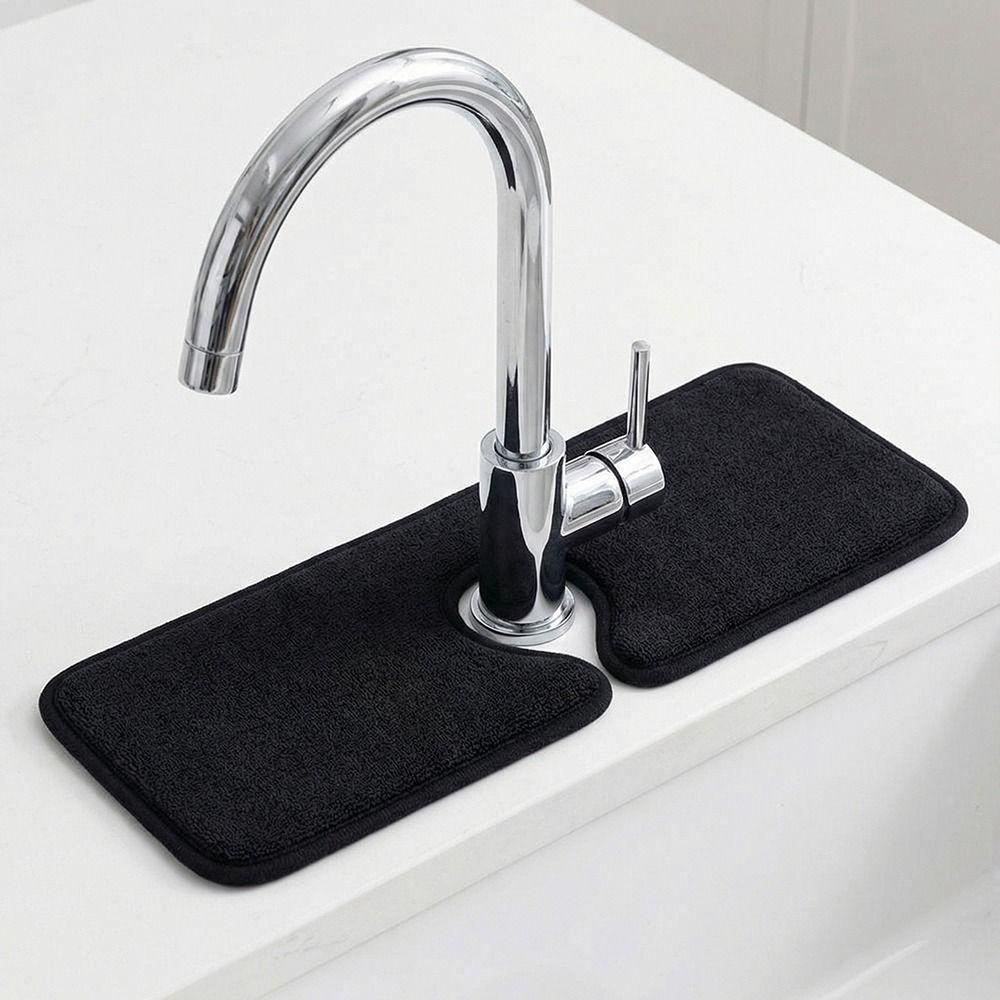 Contoured Shape Absorbent Mat Wraparound Design Sink Splash Guard Faucet Catcher Bathroom Use