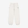 The FILA fleece basic jogger pants are a sporty design aimed at providing comfortable wear. The outer fabric is made of a blend of cotton and polyester, offering a soft touch against the skin. The color is white, making it a basic style that can easily match with various outfits.