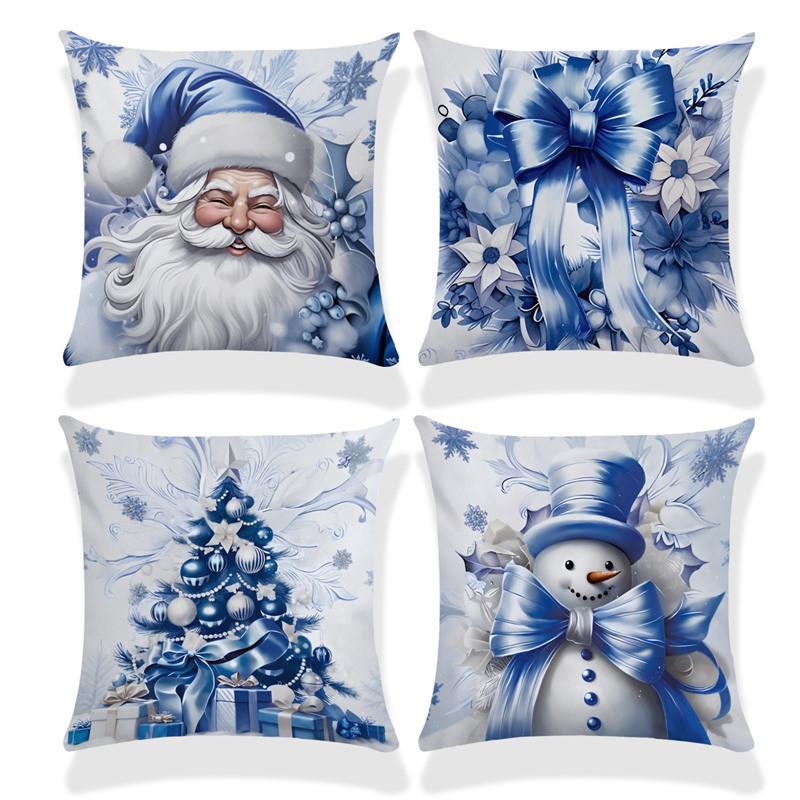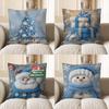 Hot Sale Blue Snowman & Santa Christmas Pillowcase - Festive Sofa Cushion Cover