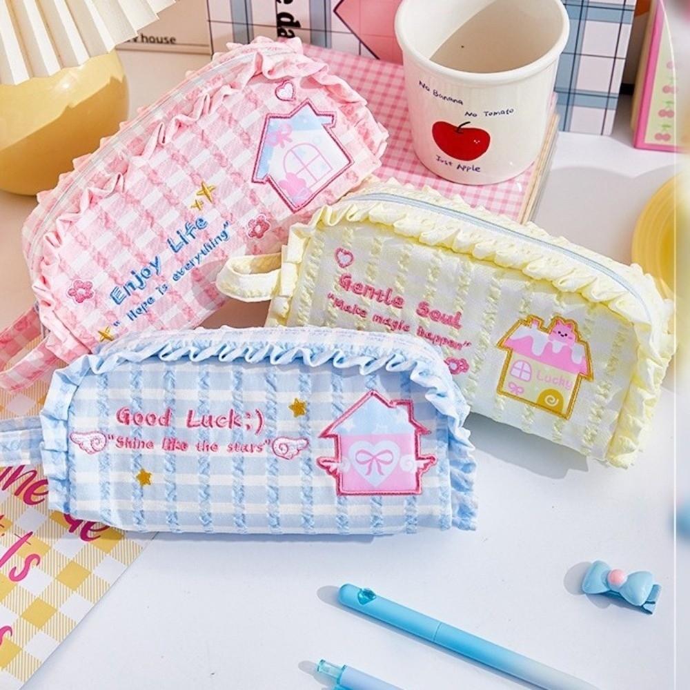 Dopamine Style Pencil Storage Bags Checkered Pencil Pouch New Stationery Bag School Use