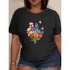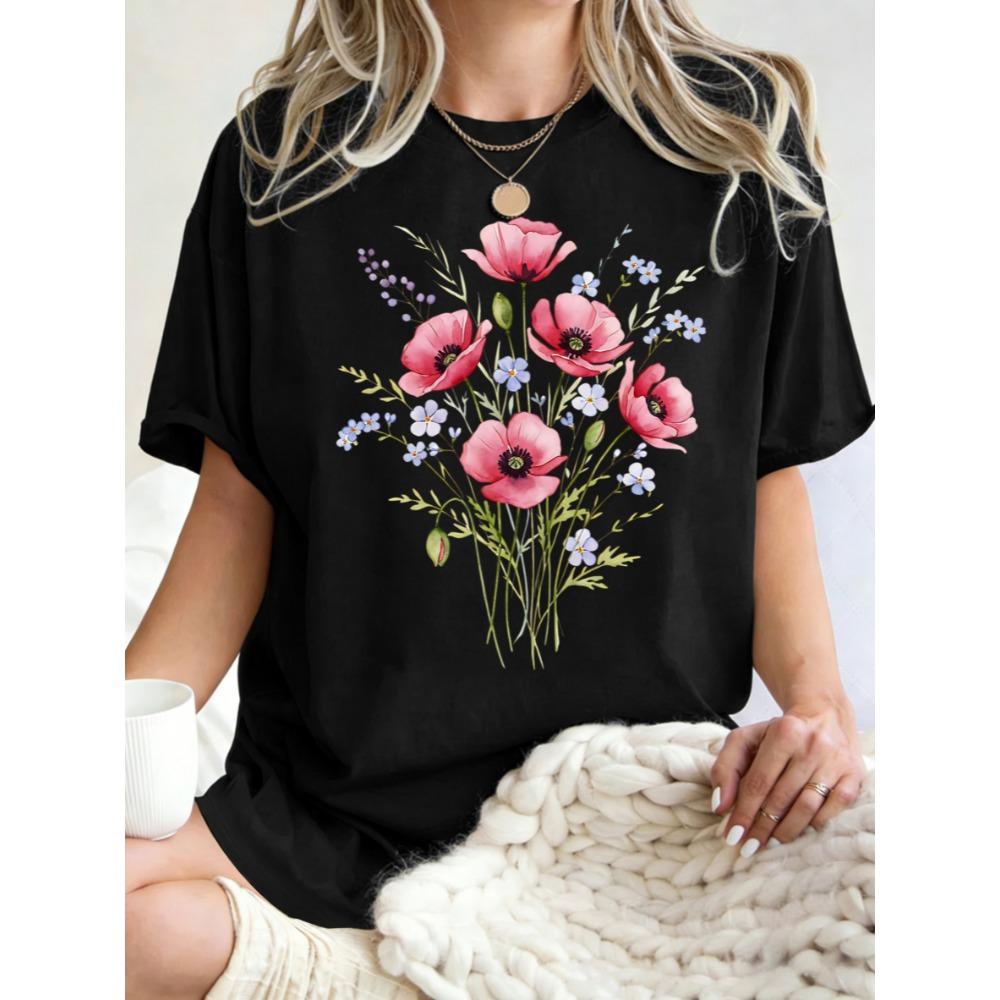 Beautiful Watercolor Flowers Print Womens T Shirt Cotton Oversize T-Shirts Summer Breathable Short Sleeves Sport Top