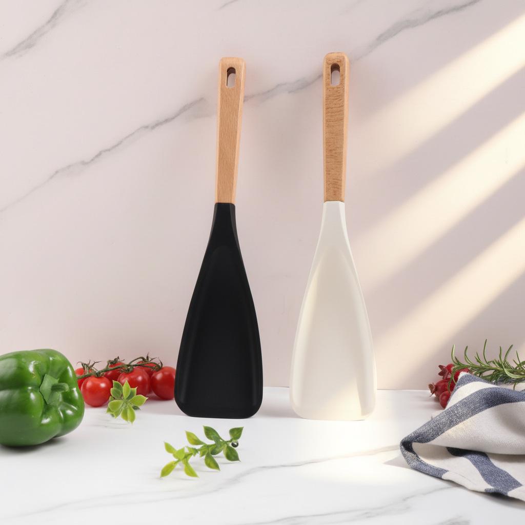 Food-Grade Silicone Spatula with Wooden Handle: Non-Stick, Heat-Resistant Cooking Utensil for Salads, Pans, Rice, and Ice Scooping