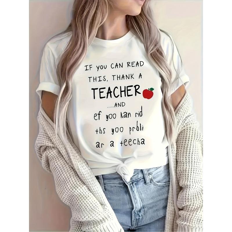 Graphic T-Shirt for Teacher'S Day - Cozy Casual Crew Neck with Short Sleeves, a Must-Have for Everyday Spring And Autumn Wear, Washable in Machine