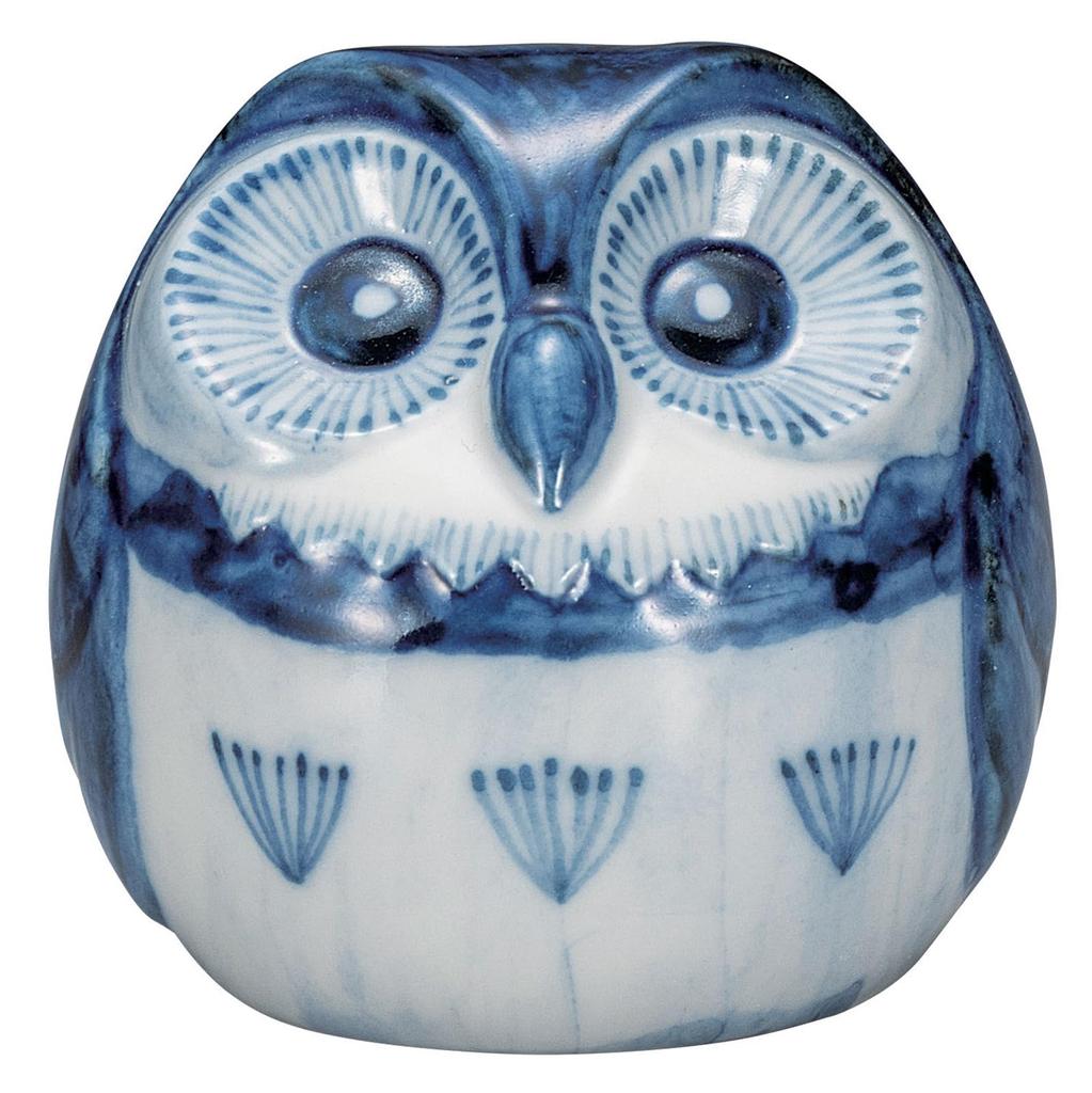 Kutani ware owl figurine, good luck charm, warding off evil, 6.5cm tall, size 2.2, underglaze blue, K9-1679