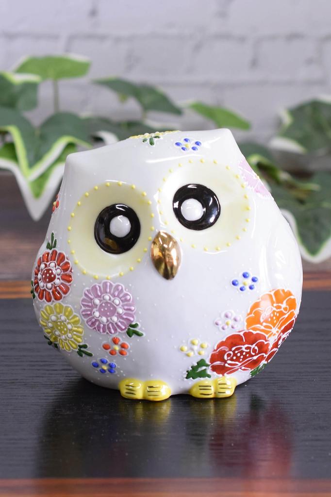 Waza no Kura Stylish Owl Figurine, Kutani Ware, Owl in Floral Design, Ceramic, Lucky Charm, High-End Brand, Interior Decor, Object, Perfect for 60th,