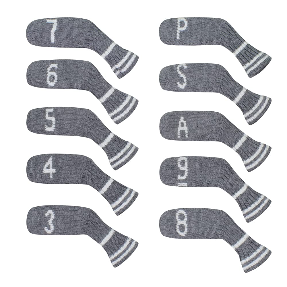 Scott Edward Golf Iron Headcovers, 10-Piece Set, Cute, Basically Sock-Shaped, Washable, Durable Golf Club Head Protectors (Gray)