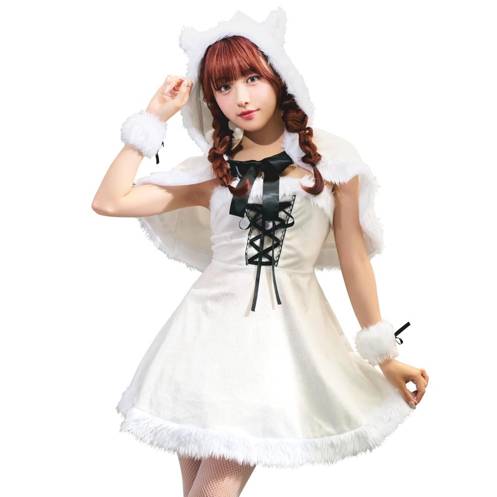 Set Contents: Hooded cape, dress, cuffs, transparent straps