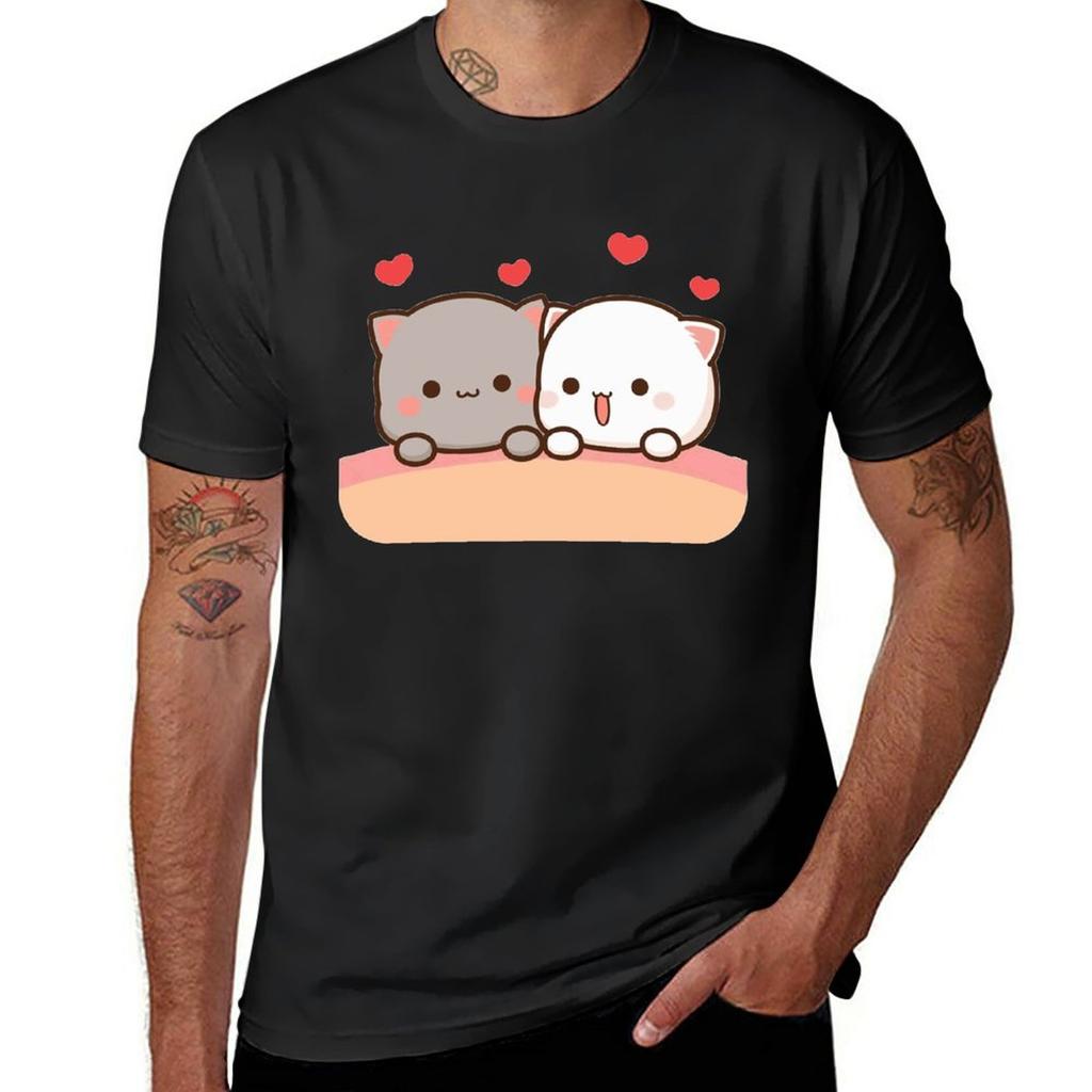 Peach and Goma Cat Mochi Milk Cartoon Couple Tshirt Men Women Crewneck Short Sleeve Top Gift Ideas