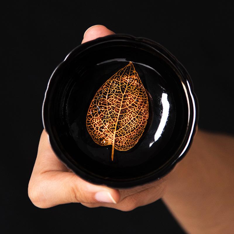 300ML Pottery Wooden Leaf Tea Cup Glaze Yaochang Tianmu Kiln Variable Jiancha Wooden Leaf Firing Medium Temperature Glaze