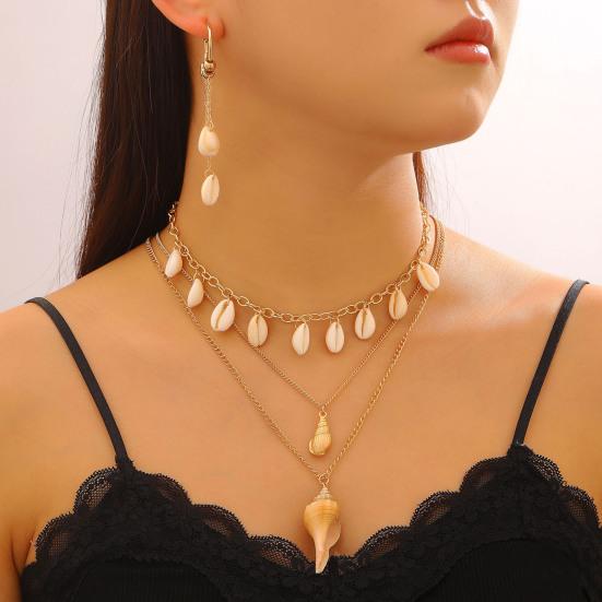 Natural Seashell Layered Necklace Tassel Ocean-Inspired Jewelry Beach Earrings Set Vacation Style Elegant Gift for Women