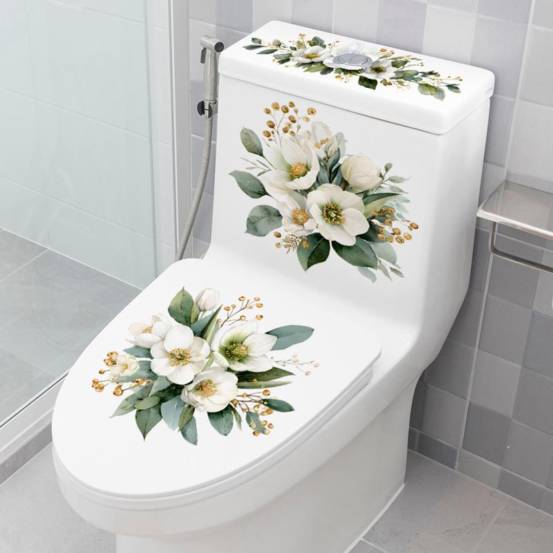 Toilet Sticker Flower Butterfly Sticker Bathroom Self-Adhesive Painting Waterproof Sticker Toilet Cover Bathroom Wall Sticker