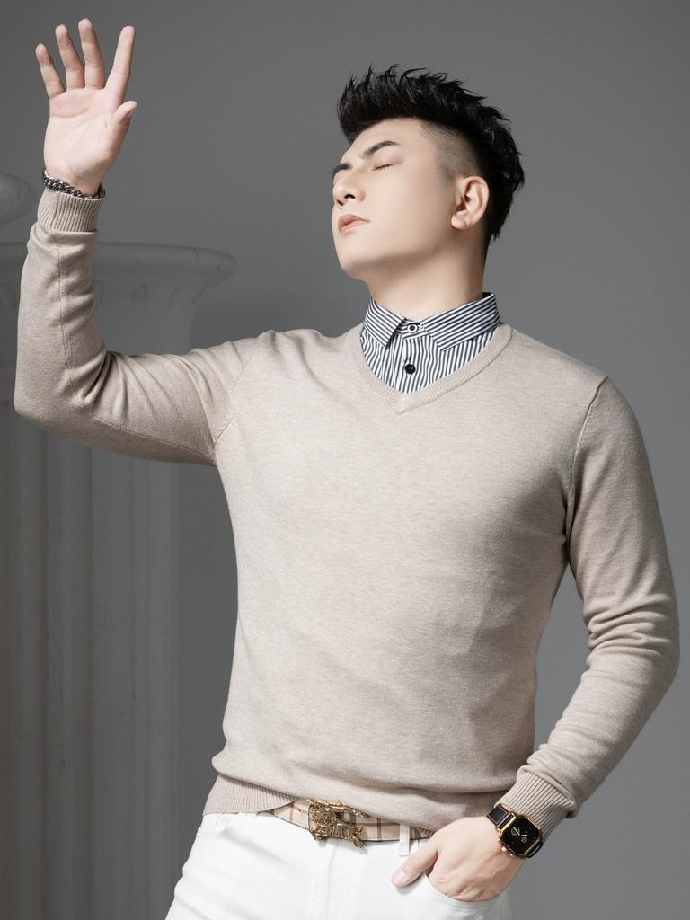 European Trendy Brand V-Neck Fake Two-Piece Sweater for Men, 2025 Autumn and Winter New Solid Color Knitwear, Warm Knitted Sweater