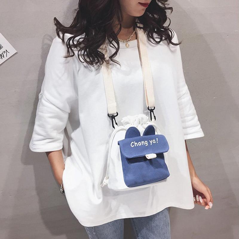 Cute Canvas Bag New Solid Color, Small Ear Crossbody Bag Women's Ins Style Large Capacity Crossbody Bag