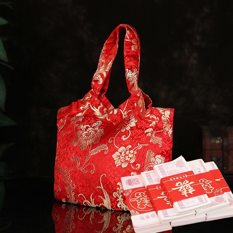 Brocade portable bride price, big red envelope, 15W wedding bridesmaid holding candy bag, gold foil thousand yuan