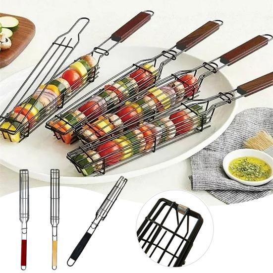 Elevate your grilling experience with this versatile BBQ cage, perfect for outdoor gatherings and dinner parties. Designed to securely hold vegetables, meats, and fish, it prevents food from falling off the grill. Featuring an upgraded handle with flat, paddle-like edges, flipping your kebabs is easier and safer than traditional ring skewers.