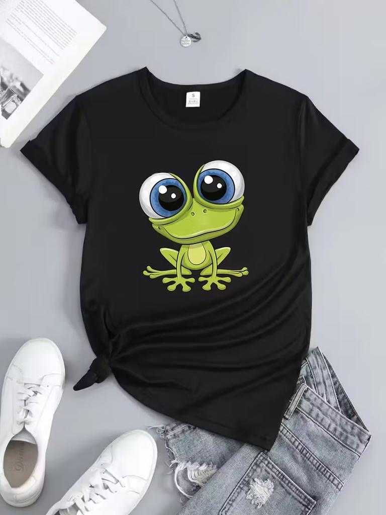 Cartoon Cute Big Eyed Frog Tshirt Womens Fashionable Short Sleeved Tshirt Casual and Comfortable Short Sleeved Top Y2K
