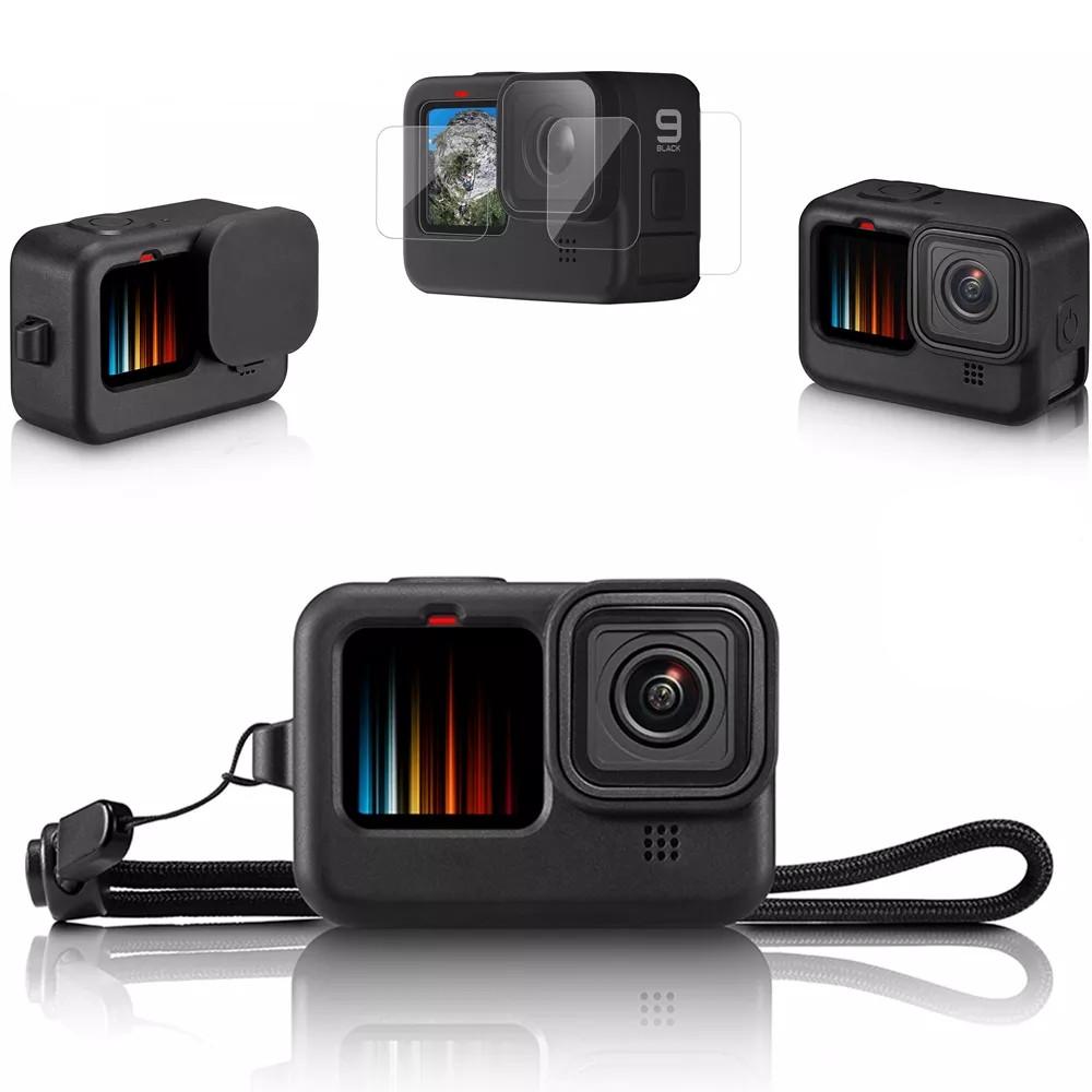 Silicone Case for GoPro Hero12 11 10 Black Tempered Glass Screen Protector Protective Film Lens Cap Cover for GoPro9 Accessories