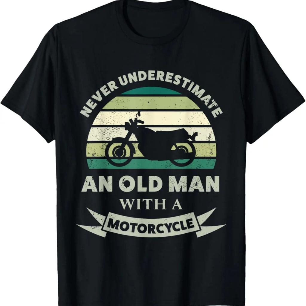 Mens Old Man with a Motorcycle Funny Dad Gift T-Shirt
