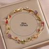 Luxury Gold-Plated Copper Zircon Leaf Bracelet, High Quality Jewelry