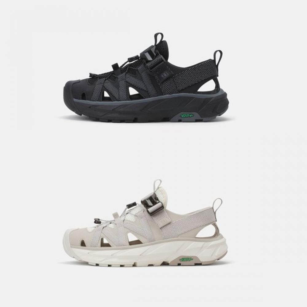 KOLON SPORTS' men's and women's sandals, Dragon 2, provide toe protection and substantial cushioning, making them ideal for light outdoor activities in summer. Crafted with a soft-touch synthetic leather and sandwich mesh upper, they offer comfort and the quick lace structure allows for easy adjustments. The midsole contains recycled materials for enhanced cushioning, while the durable mugrip H ensures excellent grip on various trail terrains. The EVA footbed insole maximizes comfort.
