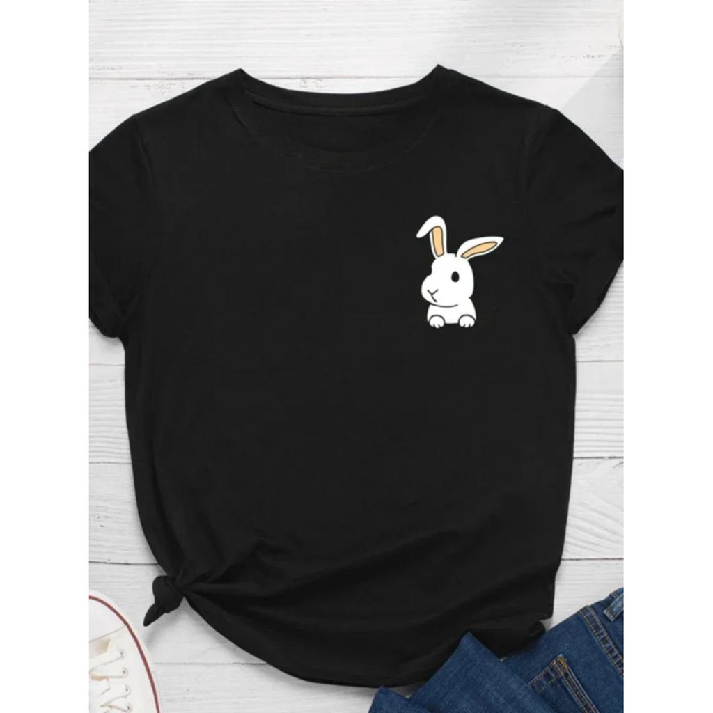 Pocket Bunny Print Women T Shirt Short Sleeve O Neck Loose Women Tshirt Ladies Tee Shirt Tops Clothes Camisetas Mujer