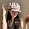 Polyester Plaid Cloud Cap Thin Women Octagonal Hat Vintage Grid Beret Cap Summer