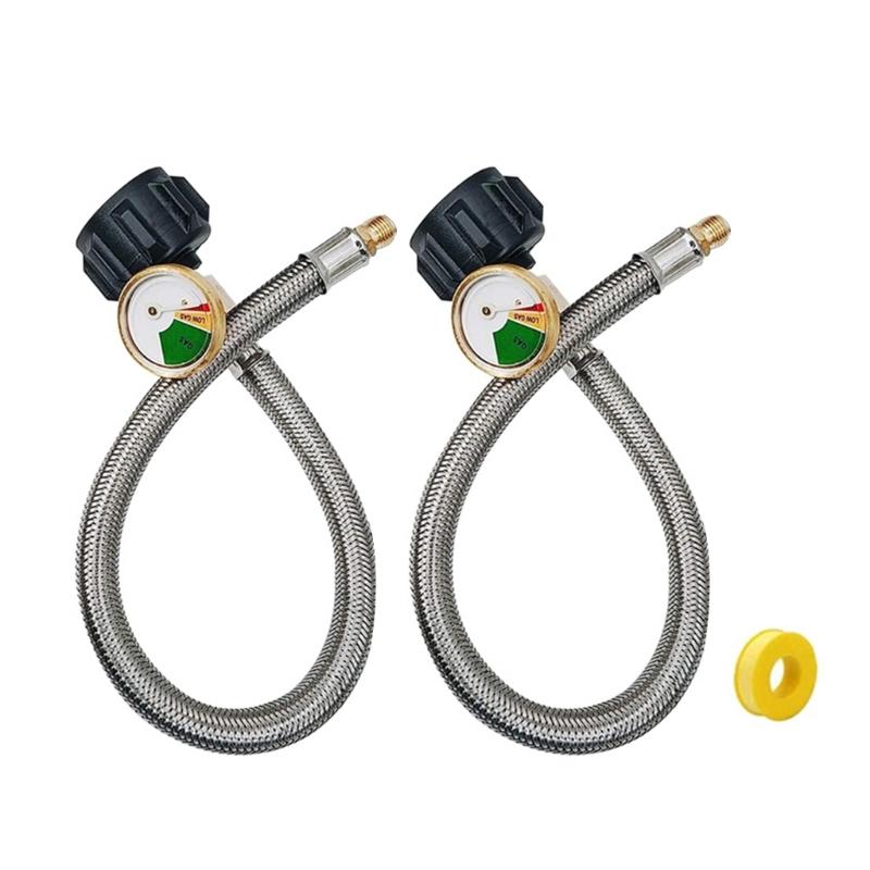 17inch Regulator Propane Hose Connector Replacement Stainless Steel Propane Hose with Gauges 1/4in Male NPT