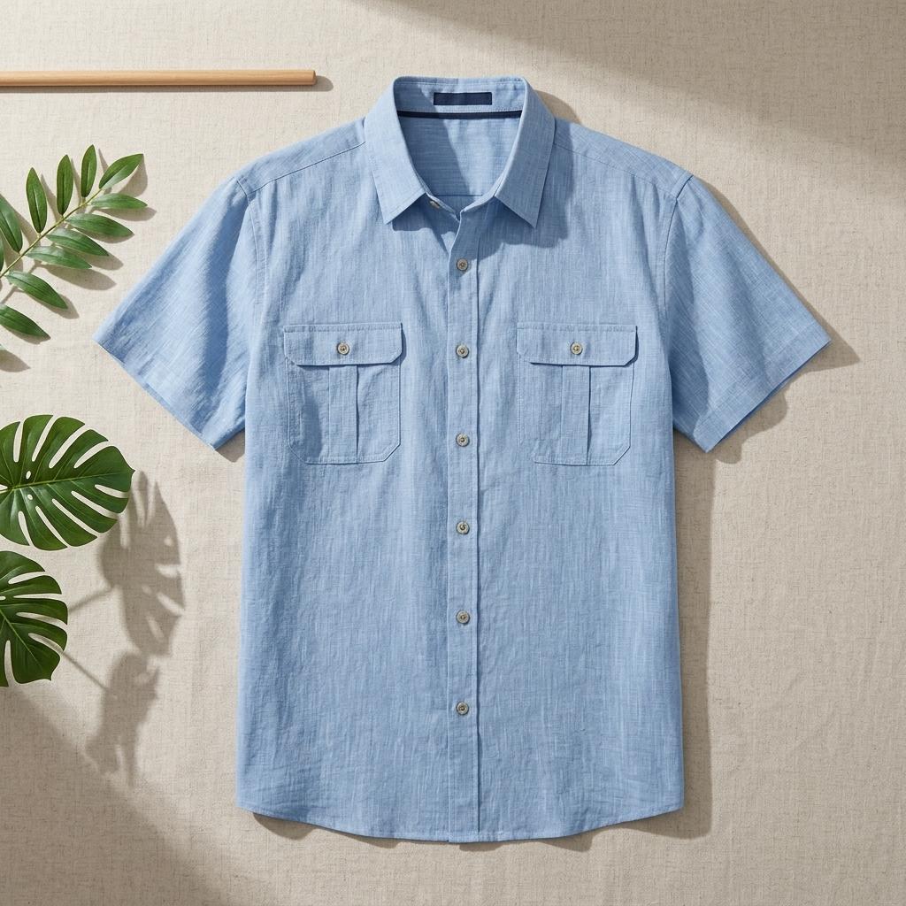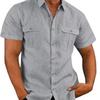 Men'S Shirt With Double Pockets Cotton-Linen Short-Sleeve Shirt Casual Vacation Shirt