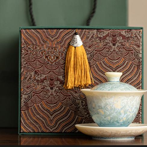Crystal Glaze Sancai Cover Bowl Gongfu Tea Set Anti Scald Ceramic Gaiwan for Chinese Tea Ceremony Home Use Handmade Gift