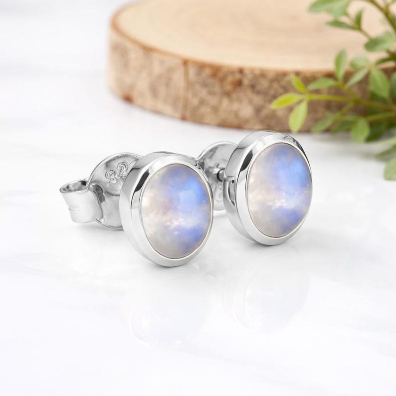 Solid 925 sterling Silver Moonstone Gemstone Stud Earrings Gift For Her Silver Jewelry