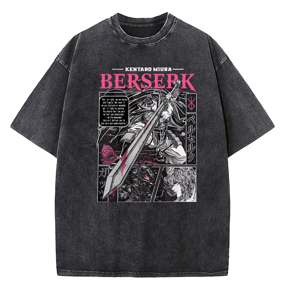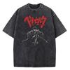 2026 Anime Berserk Guts Graphic Printed Tee Men Women Vintage Washed Casual Tshirts High Quality Cotton T Shirt Harajuku Male T-shirt