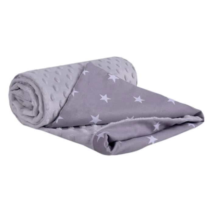 Medi Partners Couverture Bébés 100% Coton 75x100cm à Double Face pour Poussette (Étoiles Blanches et Minky Gris)