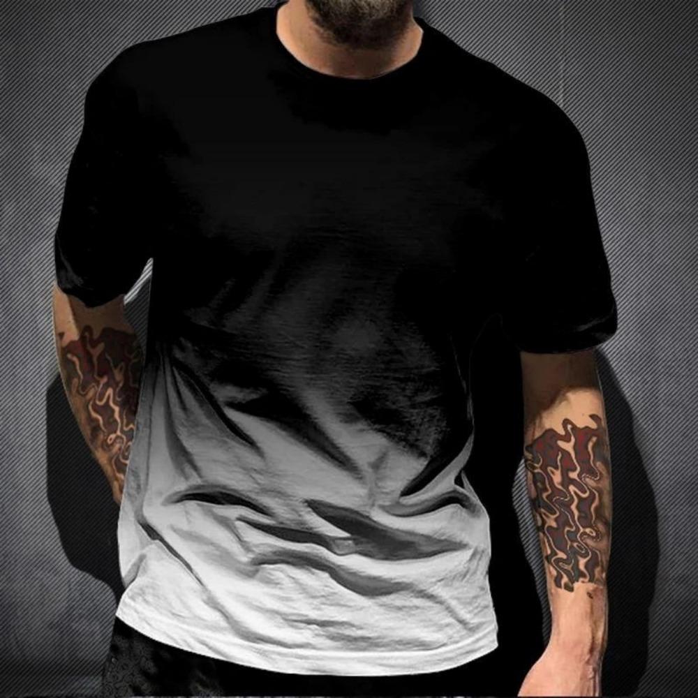 Fashionable men's breathable round neck T-shirt with gradient printed pattern, outdoor sports and leisure quick drying casual to