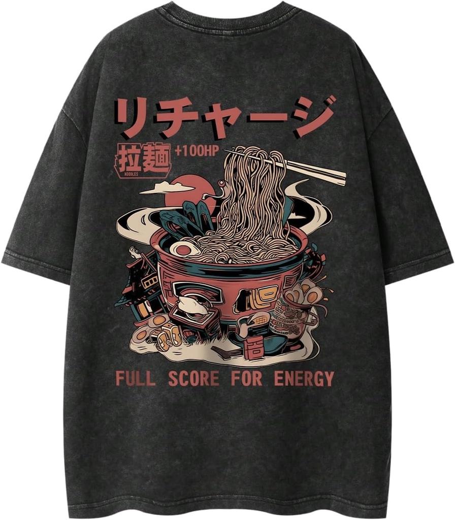Washed Double-Sided Ramen Print 100% Cotton Oversized Short Sleeve T-shirt