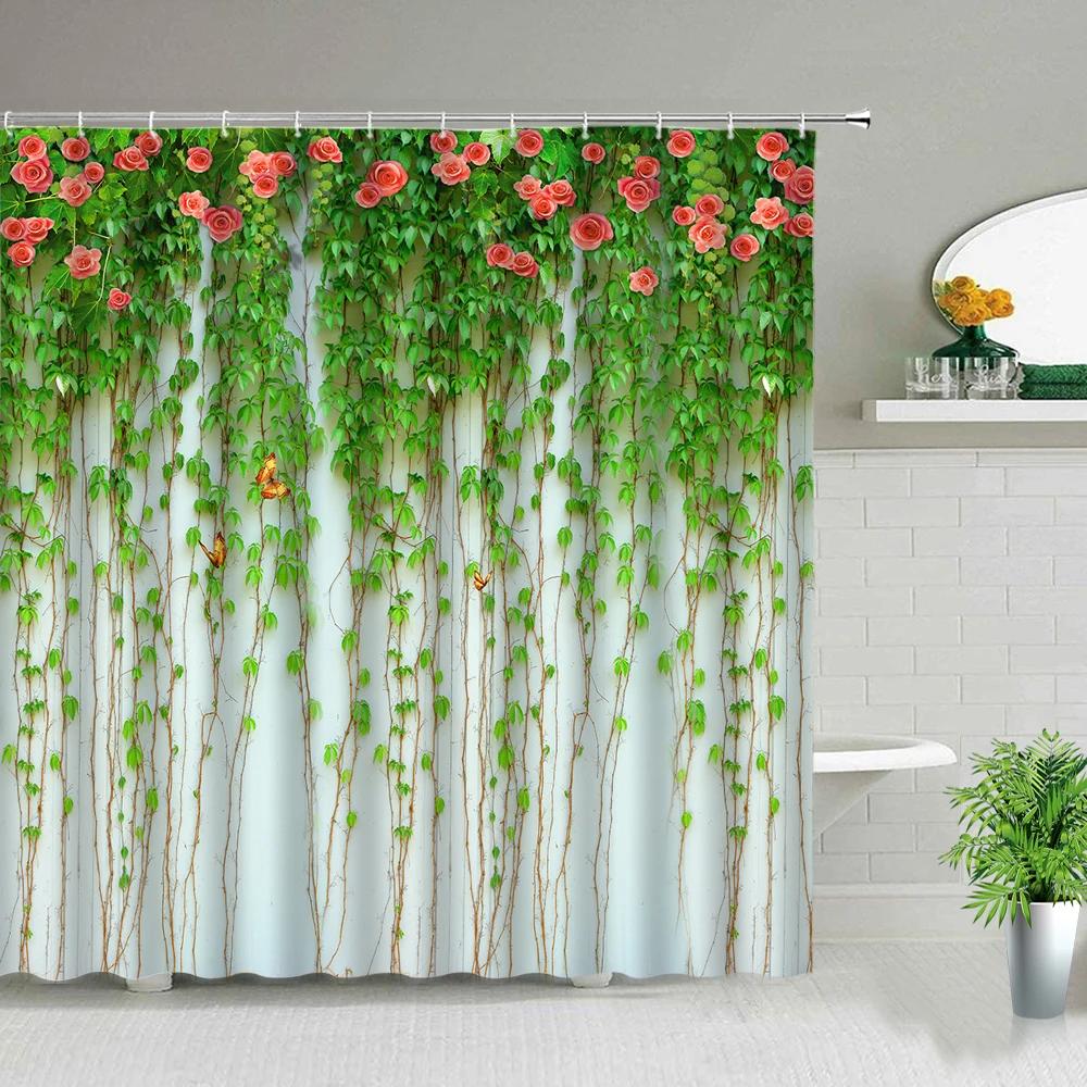 Garden Background Wall Flower Plant Scenery Shower Curtains Modern Chinese Style Dandelion Floral Green Leaf Bathroom Screen